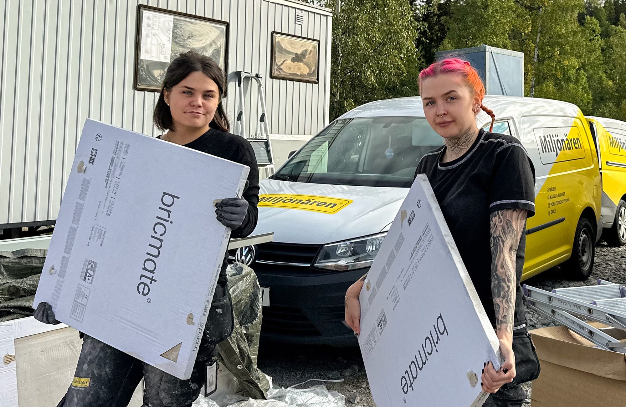 – Det stämmer, men inte på samma sätt. Här är det mer hantverk och precision. Vi arbetar med olika mönster, i kök, hallar och badrum. Det är mer variation, säger My Rantala.