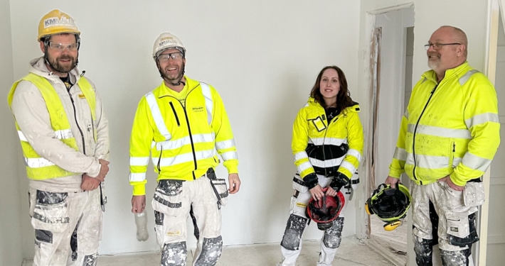 För hantverkare är det extra roligt att arbeta med en nyproduktion. Den känslan fick målarna i Leksand när de efter semestern började måla Leksands bostäders huvudkontor vid Limhagen.